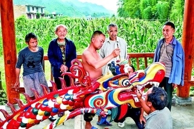 眾人抬著一艘近百米長(zhǎng)的特制龍舟前往河邊。