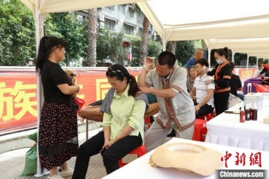 游客在廣西金秀體驗(yàn)瑤醫(yī)。盤斌 攝
