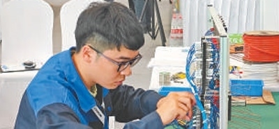手持記號(hào)筆,目光如炬,只見軌道信號(hào)控制技術(shù)項(xiàng)目選手陳權(quán)(見圖,本報(bào)記者蔣雨師攝)在電路圖里精準(zhǔn)鎖定電路,將一個(gè)個(gè)接點(diǎn)逐一填入配線表,動(dòng)作行云流水,一氣呵成。在大賽現(xiàn)場,軌道信號(hào)控制技術(shù)項(xiàng)目選手需要完成軌道信號(hào)設(shè)備的設(shè)計(jì)、施工、調(diào)試與檢修工作。就設(shè)計(jì)環(huán)節(jié)而言,選手們需要把上百條電路信號(hào)的轉(zhuǎn)轍機(jī)電路設(shè)計(jì)圖轉(zhuǎn)換為電路配線表,但凡有一個(gè)接點(diǎn)錯(cuò)誤,整個(gè)電路都將出現(xiàn)問題,而這一環(huán)節(jié),陳權(quán)只花了10分鐘。