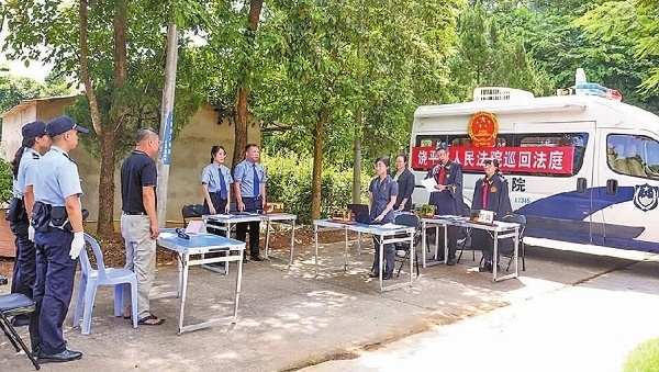 近日,廣東省饒平縣人民法院將巡回法庭開到潮州市生態(tài)司法修復(fù)基地,對一宗污染環(huán)境刑事案件進行公開審理并當庭宣判,以被告人劉某龍犯污染環(huán)境罪,判處其有期徒刑一年一個月,緩刑二年,并處罰金人民幣1萬元。法院向被告人發(fā)出生態(tài)修復(fù)補植令。圖為巡回審判現(xiàn)場。(本報記者 吁青 本報通訊員 張蝶 謝鑠 攝)