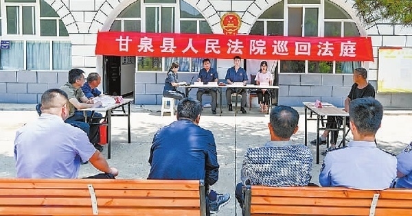 近日,陜西省甘泉縣人民法院道鎮(zhèn)人民法庭在審理一起侵害集體經(jīng)濟組織成員權(quán)益糾紛案件時,考慮到本案為該區(qū)域多發(fā)常見類糾紛,遂將巡回審判庭搬進道鎮(zhèn)五里橋村,在窯洞前就地審理。庭審中,法官充分聽取雙方當事人意見,就爭議焦點進行釋法明理。經(jīng)過一個多小時的調(diào)解,雖因雙方訴求差距過大未最終達成調(diào)解協(xié)議,但極大緩和了雙方矛盾。下一步,法官將繼續(xù)就雙方當事人的訴求研判方案,組織調(diào)解。庭審結(jié)束后,法官向群眾介紹了本案相關(guān)的法律規(guī)定,就大家關(guān)心的法律問題進行答疑解惑。圖為巡回審判現(xiàn)場。(本報記者 劉輝 本報通訊員 李樂 攝)