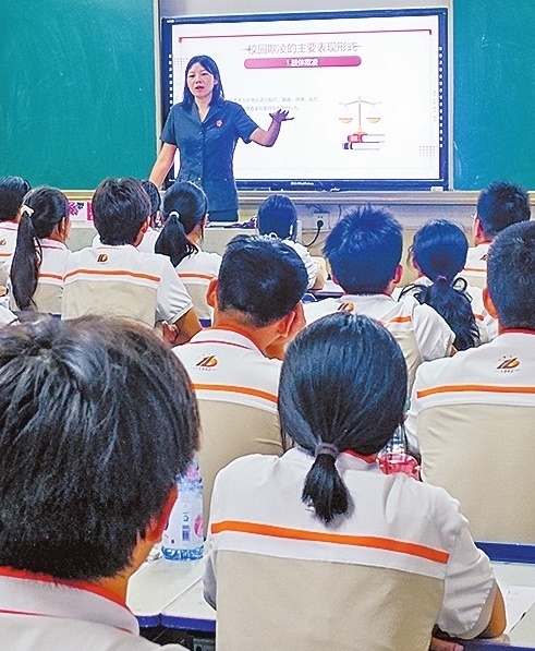 近日,湖北省保康縣人民法院蒲公英法治宣講隊成員張曉麗走進??悼h第一中學,結(jié)合高一新生年齡特點,詳細講解了預(yù)防未成年人犯罪法等法律知識,深入剖析校園暴力、猥褻性侵、網(wǎng)絡(luò)詐騙等危害,強調(diào)學法、守法、知法、懂法的重要性,引導(dǎo)學生們樹立正確的法治觀念。圖為張曉麗向同學們講解法律知識。(本報記者 丁俐 本報通訊員 王韻婕 攝)