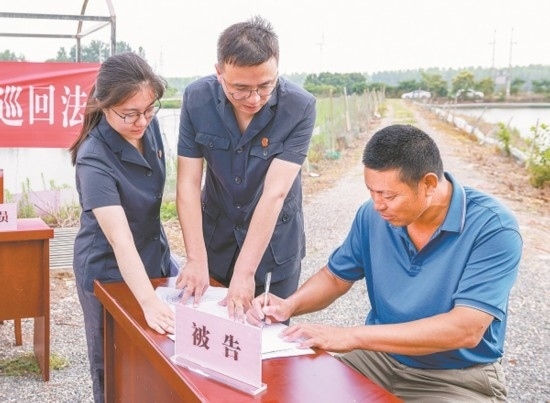 近日,安徽省天長(zhǎng)市人民法院秦欄人民法庭法官來(lái)到東風(fēng)村螃蟹養(yǎng)殖基地,公開開庭審理一起農(nóng)業(yè)承包合同糾紛案。法官經(jīng)過現(xiàn)場(chǎng)勘查、細(xì)心調(diào)解,當(dāng)場(chǎng)化解糾紛,養(yǎng)殖戶投放的500斤蟹苗有了著落,村委會(huì)減少了經(jīng)濟(jì)損失。
