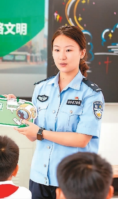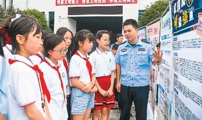 江西省宜春市公安局袁州分局鳳凰派出所民警在黃頗小學(xué)向?qū)W生講解防范網(wǎng)絡(luò)詐騙等知識(shí)。周 亮攝(人民視覺)