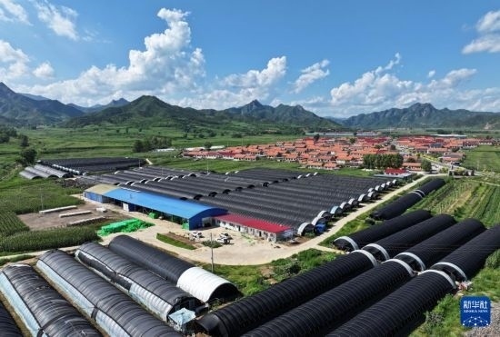 這是7月26日在隆化縣章吉營鎮(zhèn)拍攝的食用菌大棚(無人機照片)。