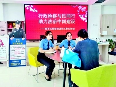 浙江省杭州市臨平區(qū)檢察院進社區(qū)開展“行政檢察,與民同行”主題普法宣傳活動,為居民提供法律咨詢服務。資料圖片