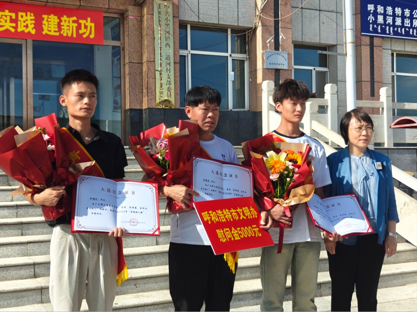 8月13日,張東霞來到玉泉區(qū)小黑河鎮(zhèn)西二道河村委會(huì),慰問見義勇為的李春亞、李健壯、秦志翔3人,為他們送上鮮花、佩戴“青城好人”綬帶、頒發(fā)榮譽(yù)證書和“青城好人”獎(jiǎng)?wù)?,授予“青城好人”榮譽(yù)稱號(hào),并給予5000元慰問金,對(duì)他們?cè)谖ky時(shí)刻勇救他人的行為給予肯定和贊譽(yù)。