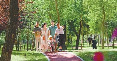 幸福道內(nèi)蒙古呼和浩特市,市民在綠道散步。王 正攝(人民視覺(jué))