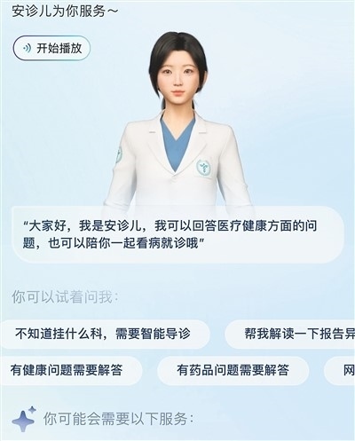 57歲的沈阿姨因為頭疼到浙江省人民醫(yī)院就診。在她的手機(jī)屏幕上,一位身著白大褂、長相甜美的數(shù)字醫(yī)生“安診兒”正在為她提供幫助。