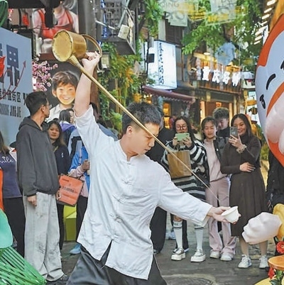 豐富文旅業(yè)態(tài)磁器口古鎮(zhèn)民俗表演。 磁器口古鎮(zhèn)管委會供圖