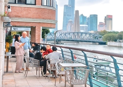 市民游客在蘇州河畔休憩觀光。本報(bào)記者 李 貞攝