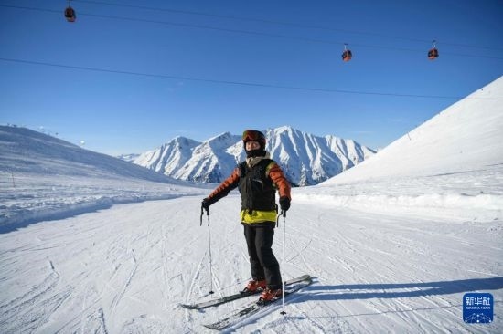 這是12月3日在吉克普林國(guó)際滑雪度假區(qū)拍攝的滑雪巡救員滿德力。
