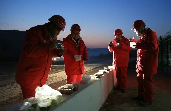 1月28日,長(zhǎng)慶油田第二采油廠(chǎng)搶險(xiǎn)隊(duì)員在井場(chǎng)吃了一頓特殊的“年夜飯”。新華社發(fā)