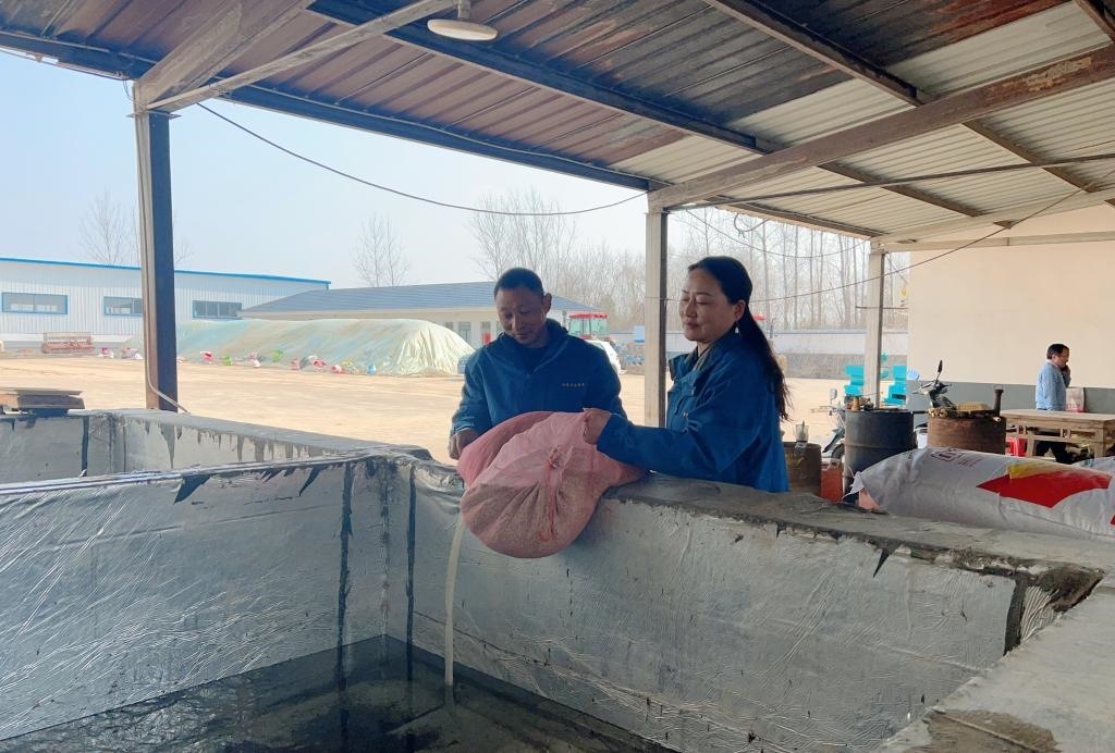 3月6日,田素平(右一)正在浸種。(丁玉華 攝)