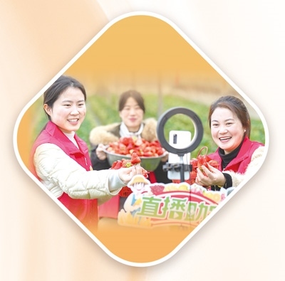 浙江省長(zhǎng)興縣畫(huà)溪街道,青年黨員干部通過(guò)網(wǎng)絡(luò)直播幫農(nóng)戶(hù)銷(xiāo)售新鮮草莓。