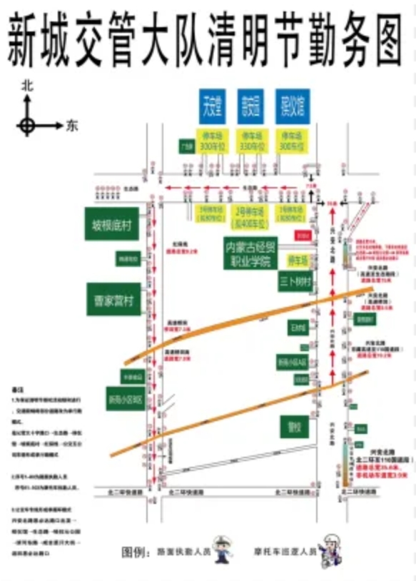 清明節(jié)假期新城區(qū)紅保線將實(shí)行單向通行。4 月 4 日至 4 月 6 日每日 6 點(diǎn)-14 點(diǎn)紅保線將實(shí)行單向通行,祭掃市民可從呼哈線紅保線交匯處經(jīng)過原呼和浩特市殯儀館、慈安園 、天安堂至坡根底村處向南行駛可返回市區(qū),Y371(省道104至野馬圖路)調(diào)整為單行,只能由西向東行駛。同時(shí)建議市民盡量選擇公交車等綠色出行方式,乘坐公交車36路58路在國(guó)家北方足球訓(xùn)練基地下車即可。