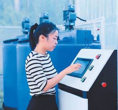 王園園在大棚操作物聯(lián)網系統(tǒng)。