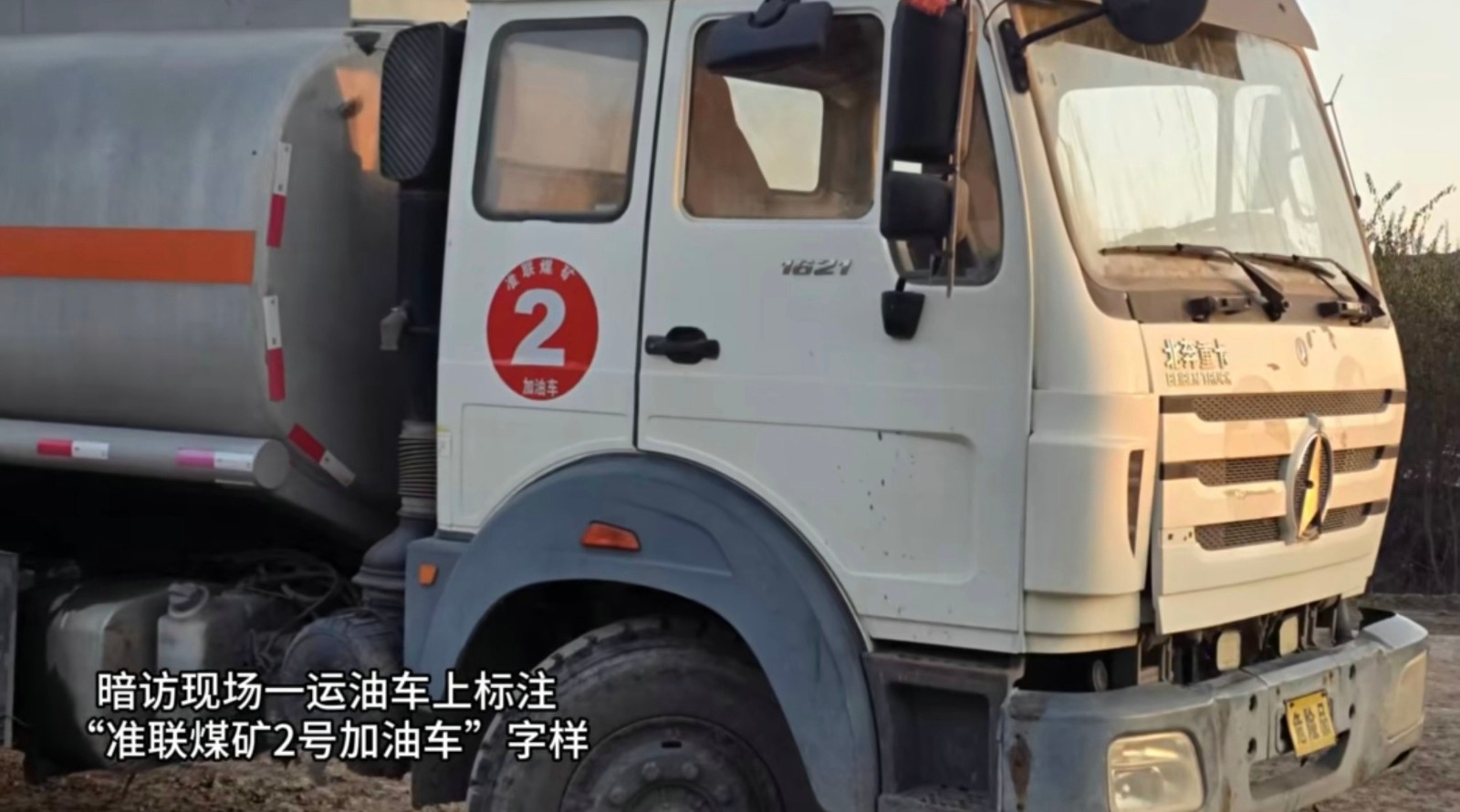 然而,記者在現(xiàn)場暗訪時注意到,正在抽油的那輛無牌運油車上,清晰標(biāo)注著“準(zhǔn)聯(lián)煤礦2號加油車”字樣,在現(xiàn)場作業(yè)的男子也承認(rèn)這里是準(zhǔn)聯(lián)煤礦的儲油庫,這顯然與賀主任的說法完全相悖。