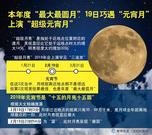 元宵將至,月滿冰輪。天文專家表示,2019年的元宵月不僅恰逢“年度最大最圓月”,還是“十五月亮十五圓”,最圓時(shí)刻出現(xiàn)在19日23時(shí)54分。屆時(shí),我國凡是天氣晴朗的地方,都將會(huì)出現(xiàn)“皓月當(dāng)空照”的天文美景。