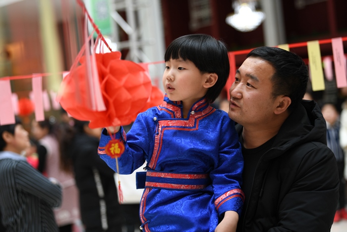 2月17日,市民在內(nèi)蒙古圖書館猜燈謎。當(dāng)日,為慶祝我國傳統(tǒng)節(jié)日元宵節(jié),內(nèi)蒙古圖書館舉行“書香慶元宵”主題活動,現(xiàn)場共準(zhǔn)備了蒙漢文燈謎1300余 條,通過 猜燈 謎、繪花 燈、包元宵等活動,讓參與者樂在其中,體驗(yàn)傳統(tǒng)節(jié)日習(xí)俗。