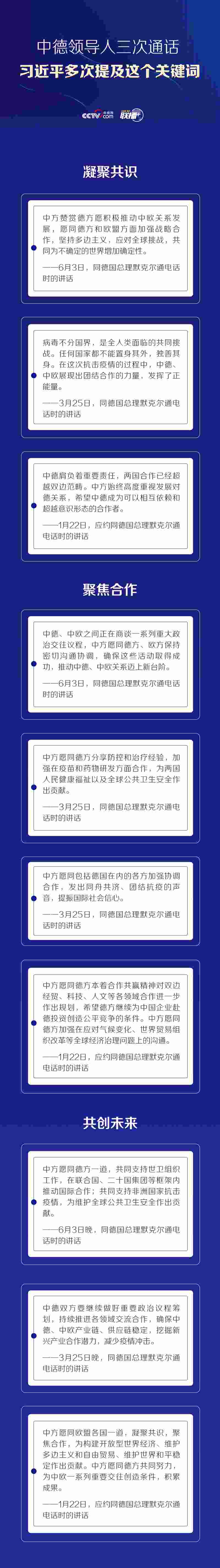 聯(lián)播+6月3日晚,習(xí)近平主席同德國總理默克爾通電話。這是自新冠肺炎疫情暴發(fā)以來,雙方第三次通話。習(xí)近平強(qiáng)調(diào),近日中德“快捷通道”正式啟動(dòng),這有利于幫助兩國有需求的企業(yè)加快復(fù)工復(fù)產(chǎn),維護(hù)國際產(chǎn)業(yè)鏈、供應(yīng)鏈穩(wěn)定。