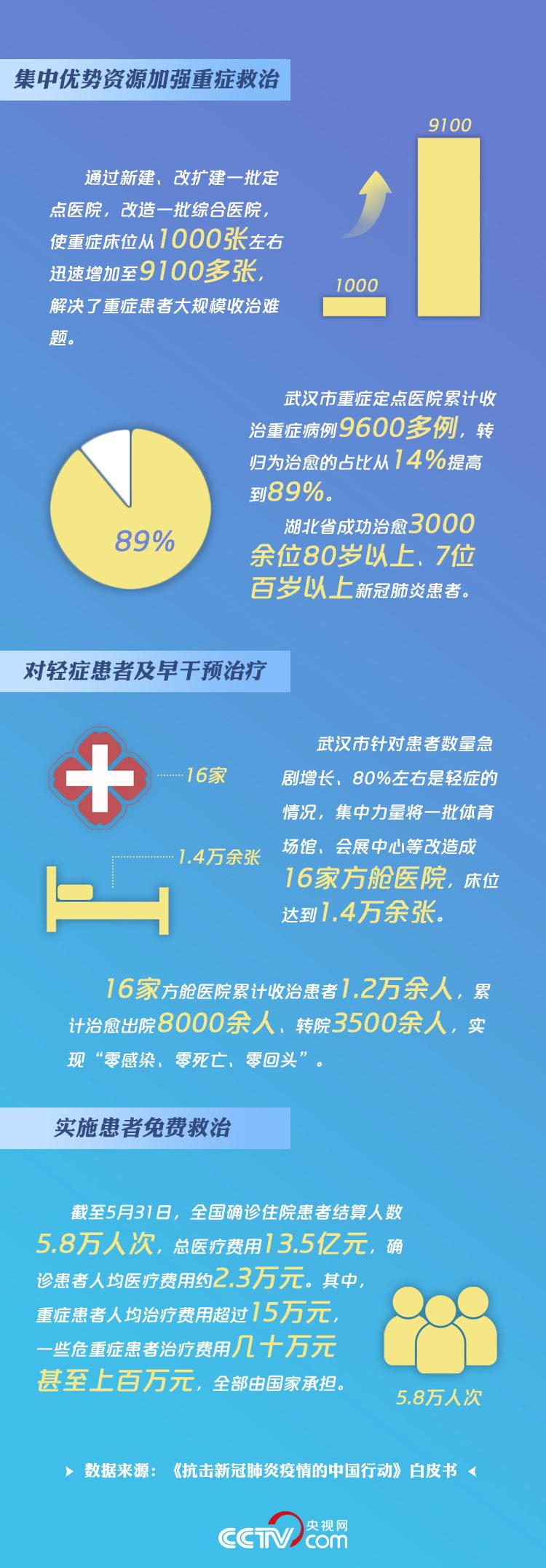“人的生命只有一次,必須把它保住?!薄盁o論年齡再大、病情再重我們都絕不放棄?!薄安幌Т鷥r,要讓患者用上最好的設(shè)備?!币粋€個戰(zhàn)“疫”成果的大數(shù)據(jù),無不彰顯了總書記憂民、愛民的赤子情懷。