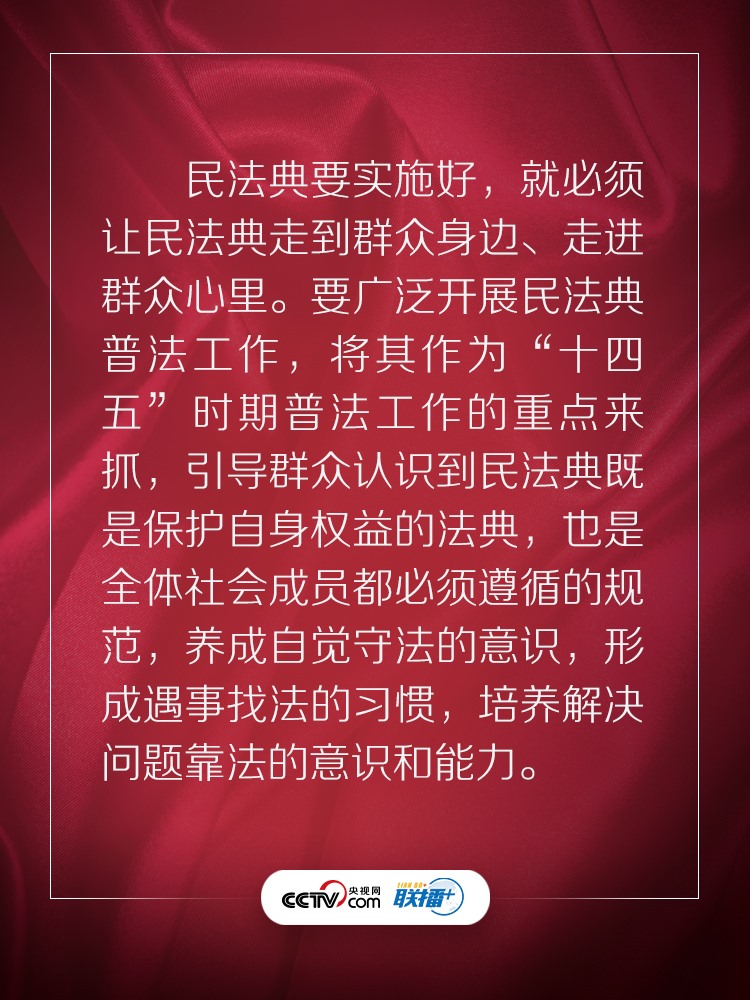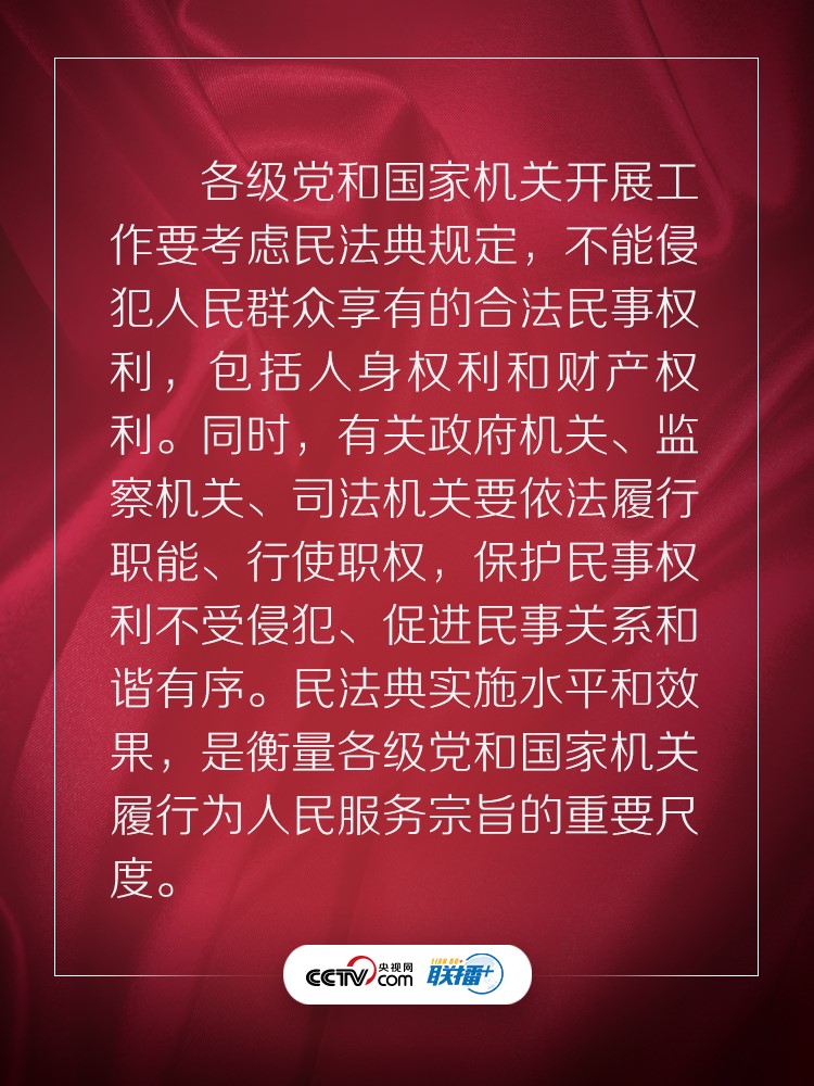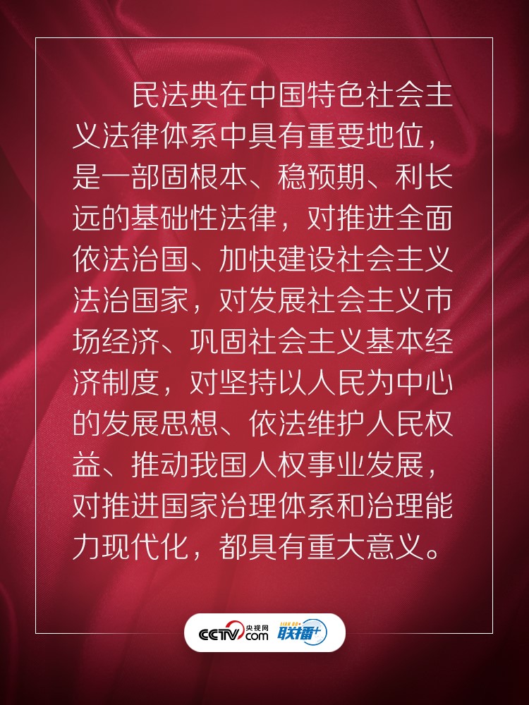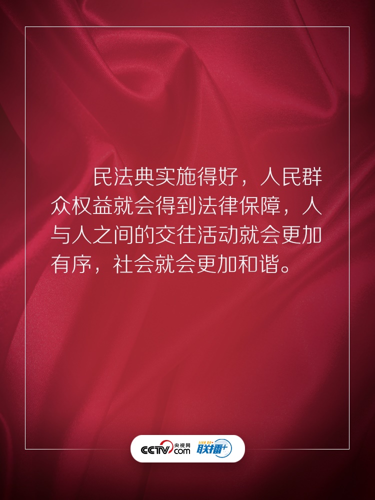 聯(lián)播+ “實施好民法典是堅持以人民為中心、保障人民權(quán)益實現(xiàn)和發(fā)展的必然要求。”