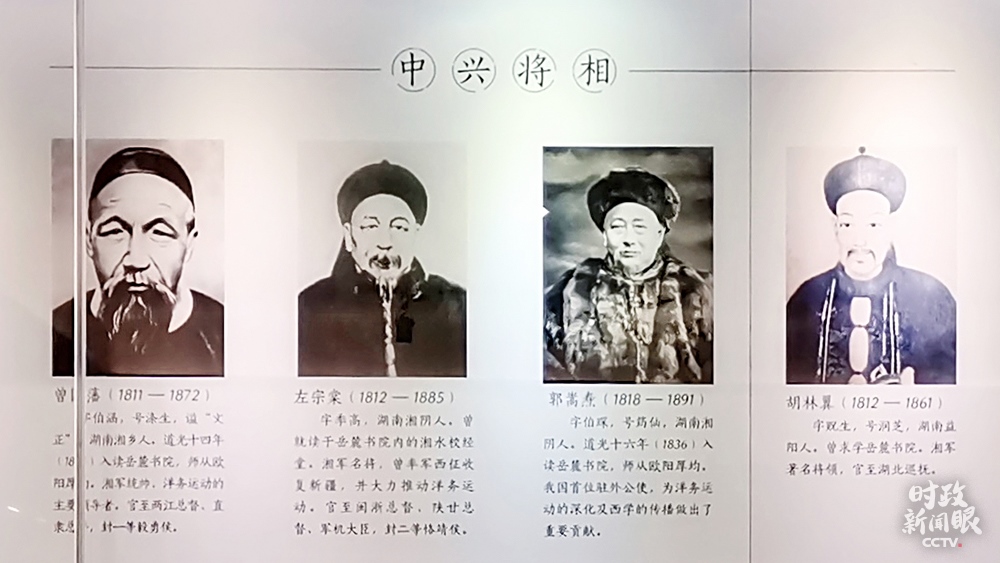 △清代中后期,岳麓書院人才輩出。左起分別是曾國藩、左宗棠、郭嵩燾、胡林翼。(總臺(tái)央視記者楊立峰拍攝)