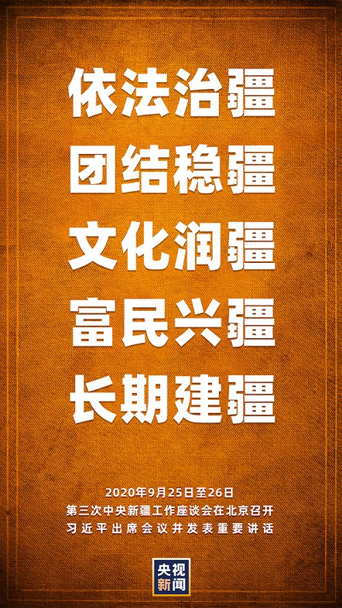 第三次中央新疆工作座談會(huì)9月25日至26日在北京召開。中共中央總書記、國(guó)家主席、中央軍委主席習(xí)近平出席會(huì)議并發(fā)表重要講話。