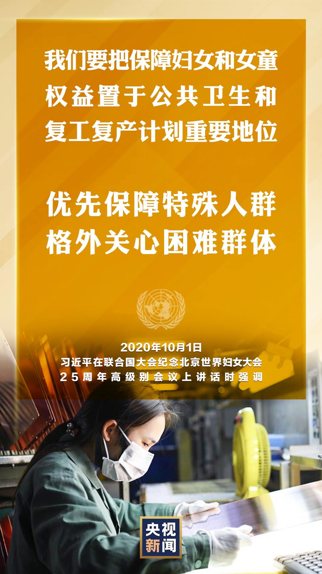 國(guó)家主席習(xí)近平10月1日在聯(lián)合國(guó)大會(huì)紀(jì)念北京世界婦女大會(huì)25周年高級(jí)別會(huì)議上通過視頻發(fā)表重要講話。就如何切實(shí)保護(hù)婦女權(quán)益,習(xí)近平提出中國(guó)主張。