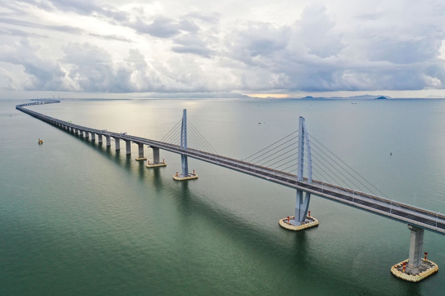 2020年9月12日拍攝的港珠澳大橋(無(wú)人機(jī)照片)。新華社記者陳曄華攝