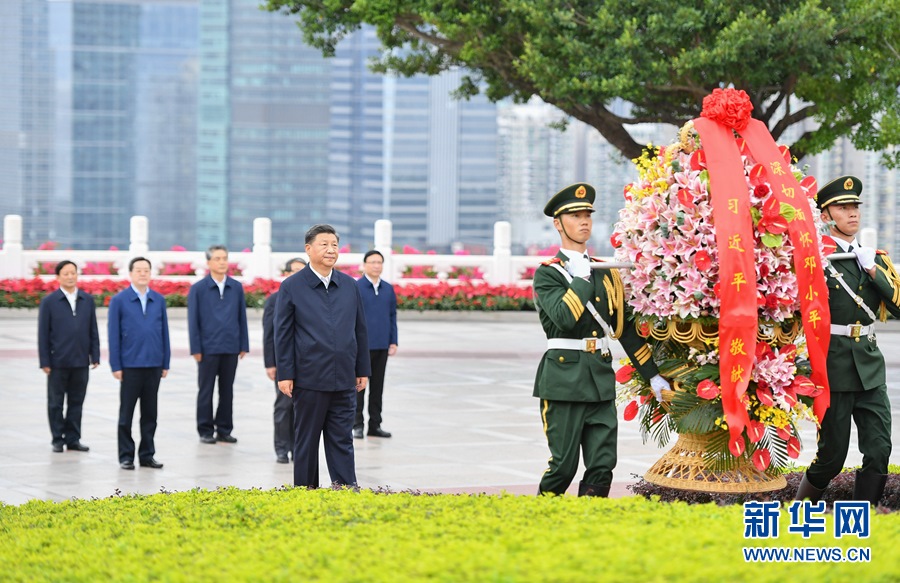 10月14日,深圳經(jīng)濟(jì)特區(qū)建立40周年慶祝大會在廣東省深圳市隆重舉行。中共中央總書記、國家主席、中央軍委主席習(xí)近平在會上發(fā)表重要講話。這是當(dāng)天下午,習(xí)近平來到蓮花山公園,向鄧小平同志銅像敬獻(xiàn)花籃。 新華社記者 李響 攝