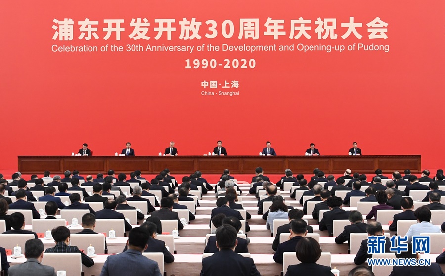 11月12日,浦東開(kāi)發(fā)開(kāi)放30周年慶祝大會(huì)在上海市舉行。中共中央總書(shū)記、國(guó)家主席、中央軍委主席習(xí)近平在會(huì)上發(fā)表重要講話。新華社記者申宏攝
