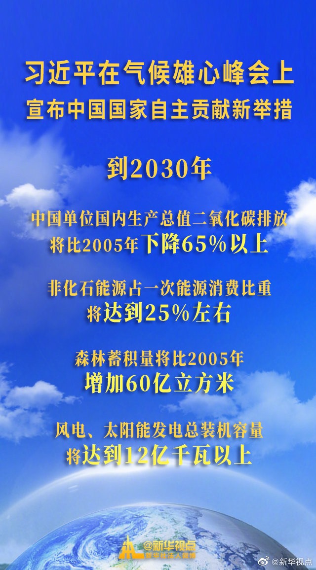 12月12日,國家主席習(xí)近平在氣候雄心峰會上宣布中國國家自主貢獻(xiàn)新舉措。