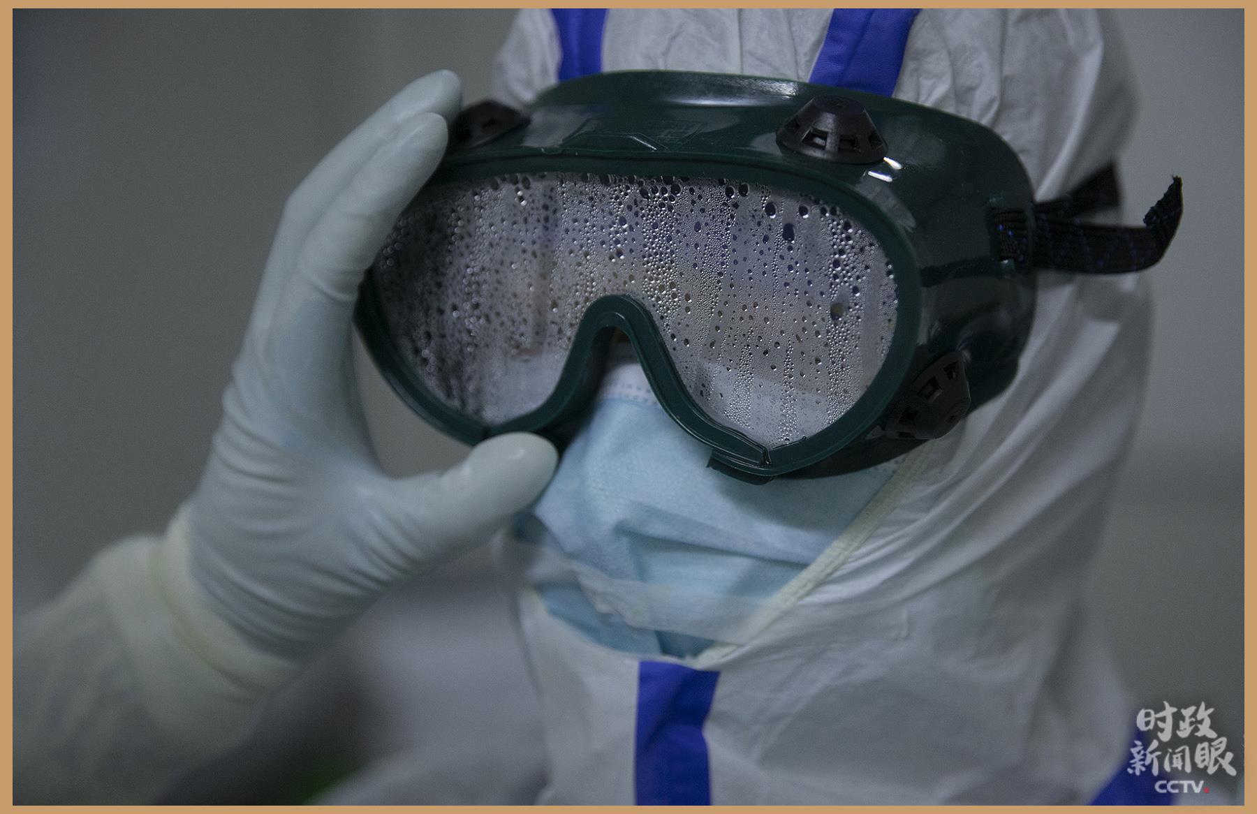 △2020年2月24日,武漢客廳方艙醫(yī)院援鄂醫(yī)療隊員的護目鏡。