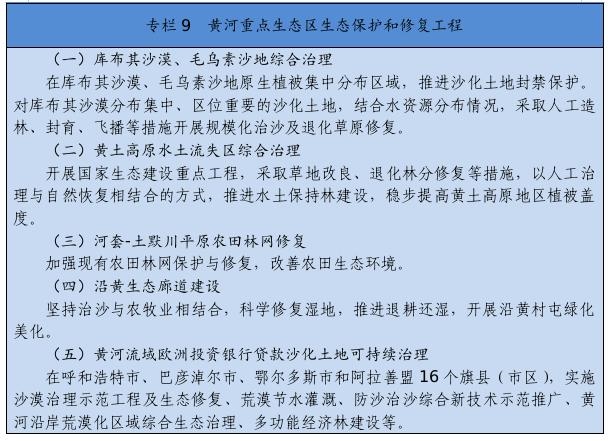 大力推進(jìn)黃河生態(tài)帶建設(shè),統(tǒng)籌水環(huán)境、水生態(tài)、水資源、水安全、水文化,推進(jìn)干支流一體化治理,突出抓好十大孔兌、多沙粗砂區(qū)集中來源區(qū)等水土保持治理,實(shí)施河道和灘區(qū)綜合提升治理工程,完善水沙調(diào)控機(jī)制。深化“一湖兩?!奔安旌鼓谞柹鷳B(tài)環(huán)境綜合治理,創(chuàng)新區(qū)域系統(tǒng)治理和流域整體治理舉措,逐步改善生態(tài)環(huán)境。全面加強(qiáng)嫩江、遼河、內(nèi)陸河水系等流域和達(dá)里諾爾、烏拉蓋等濕地生態(tài)保護(hù)修復(fù),深入開展地下水超采綜合治理。