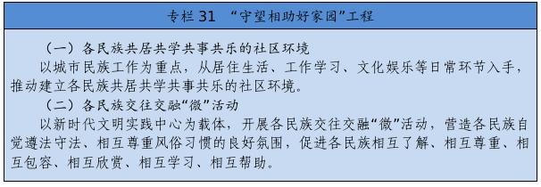 從居住生活、工作學(xué)習(xí)、文化娛樂等日常環(huán)節(jié)入手,積極營造各民族共居共學(xué)共事共樂的社會(huì)條件,開展各族群眾交流、培養(yǎng)、融洽感情的工作,形成密不可分的共同體。鼓勵(lì)各族群眾在民族地區(qū)和其他地區(qū)、城市和鄉(xiāng)村有序流動(dòng)。做好城市民族工作,讓城市更好接納少數(shù)民族群眾、少數(shù)民族群眾更好融入城市社區(qū)。大力推進(jìn)農(nóng)村牧區(qū)現(xiàn)代化,加快補(bǔ)齊基礎(chǔ)設(shè)施和基本公共服務(wù)短板,不斷滿足各族群眾的美好生活需要,確保實(shí)現(xiàn)現(xiàn)代化一個(gè)民族也不能少。