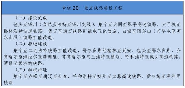 基礎(chǔ)設(shè)施保障更加有力。交通運(yùn)輸、能源外送通道和引調(diào)水骨干工程接續(xù)落地。綜合交通運(yùn)輸體系基本形成,接入全國高鐵網(wǎng),呼和浩特至張家口高速鐵路,通遼、赤峰至京沈高速鐵路連接線,浩勒?qǐng)?bào)吉至吉安鐵路順利建成,建成高速鐵路404公里。全區(qū)103個(gè)旗縣(市區(qū))全部通高等級(jí)公路,京新高速臨河至哈密、丹錫高速錫林浩特至巴林右旗等高速公路通車運(yùn)營,所有鄉(xiāng)鎮(zhèn)(蘇木)和具備條件的建制村通硬化路,建成“四好農(nóng)村路”6.6萬公里,綜合交通網(wǎng)總里程達(dá)到22.5萬公里。呼和浩特新機(jī)場(chǎng)開工建設(shè),呼倫貝爾、包頭、通遼等機(jī)場(chǎng)完成改擴(kuò)建。新建通用機(jī)場(chǎng)15個(gè),民用機(jī)場(chǎng)達(dá)到40個(gè)。黃河內(nèi)蒙古段二期防洪、引綽濟(jì)遼、東臺(tái)子水庫等重大水利工程建設(shè)順利推進(jìn)。全區(qū)5G基站突破1萬個(gè)。建成5條特高壓外送電通道。克什克騰至北京煤制氣管道投入運(yùn)營。呼和浩特地鐵1、2號(hào)線一期工程建成運(yùn)營。
