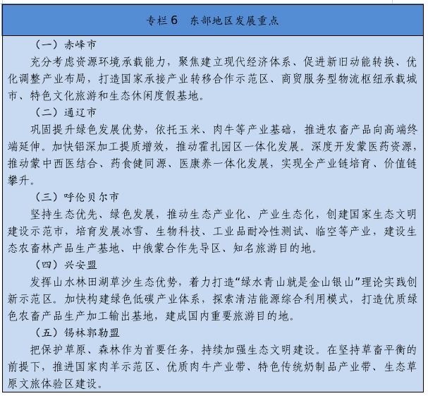 經(jīng)濟(jì)發(fā)展基礎(chǔ)更加穩(wěn)固。地區(qū)生產(chǎn)總值年均增長4.3%,人均地區(qū)生產(chǎn)總值突破1萬美元,常住人口城鎮(zhèn)化率達(dá)到64.1%。能源和戰(zhàn)略資源基地得到提升,煤炭產(chǎn)能、外運(yùn)量、發(fā)電量和外送電量均居全國首位,可再生能源裝機(jī)占比達(dá)到36.1%,稀土原材料就地轉(zhuǎn)化率達(dá)到75%,稀土功能材料及終端應(yīng)用產(chǎn)品占比達(dá)到53.6%。農(nóng)畜產(chǎn)品生產(chǎn)基地更加鞏固,糧食和畜牧生產(chǎn)連豐連穩(wěn),農(nóng)畜產(chǎn)品加工轉(zhuǎn)化率達(dá)到65%,形成2個(gè)千億級(jí)、9個(gè)百億級(jí)農(nóng)牧業(yè)主導(dǎo)產(chǎn)業(yè)。數(shù)字經(jīng)濟(jì)、會(huì)展經(jīng)濟(jì)、商貿(mào)物流、現(xiàn)代金融等加快發(fā)展。