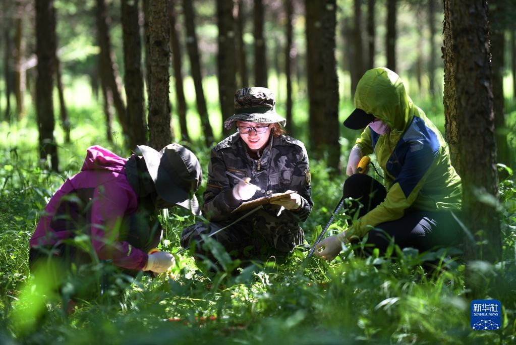 工作人員在河北塞罕壩機械林場采集數(shù)據(jù)(2017年7月12日攝)。新華社記者王曉攝