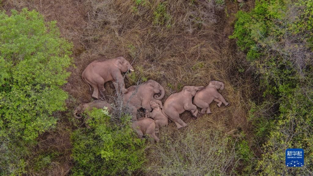 6月7日在云南省昆明市晉寧區(qū)夕陽彝族鄉(xiāng)拍攝的野象(無人機照片)。新華社發(fā)