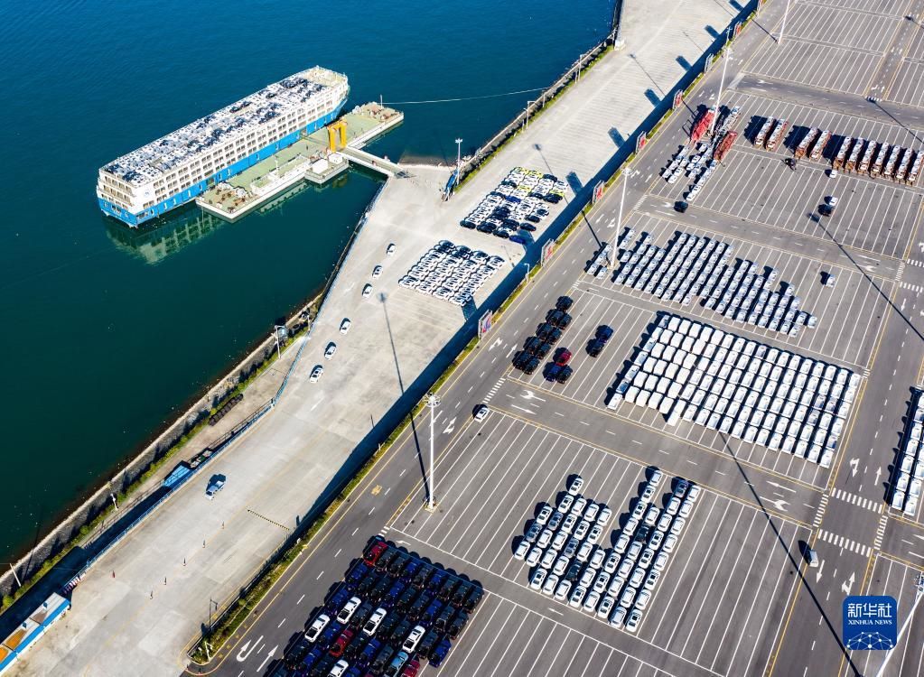 這是三峽庫區(qū)湖北省宜昌市秭歸縣秭歸港車輛分撥轉(zhuǎn)運(yùn)現(xiàn)場(2020年11月13日攝,無人機(jī)照片)。新華社發(fā)(鄭家裕攝)