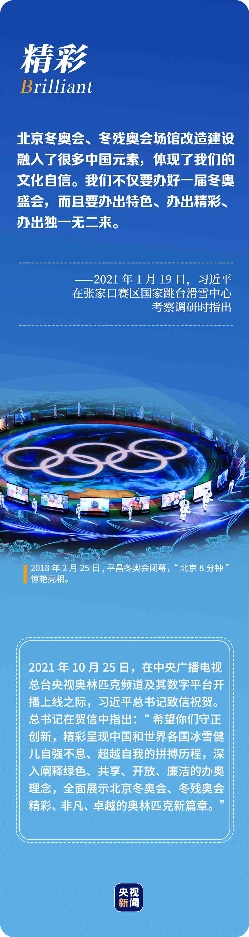 “辦好北京冬奧會(huì)、冬殘奧會(huì)是黨和國家的一件大事,是我們對(duì)國際社會(huì)的莊嚴(yán)承諾,做好北京冬奧會(huì)、冬殘奧會(huì)籌辦工作使命光榮、意義重大?!?年多來,習(xí)近平總書記始終惦記著冬奧會(huì)籌辦進(jìn)展,多次實(shí)地考察、主持召開重要會(huì)議部署推進(jìn)冬奧籌辦工作。