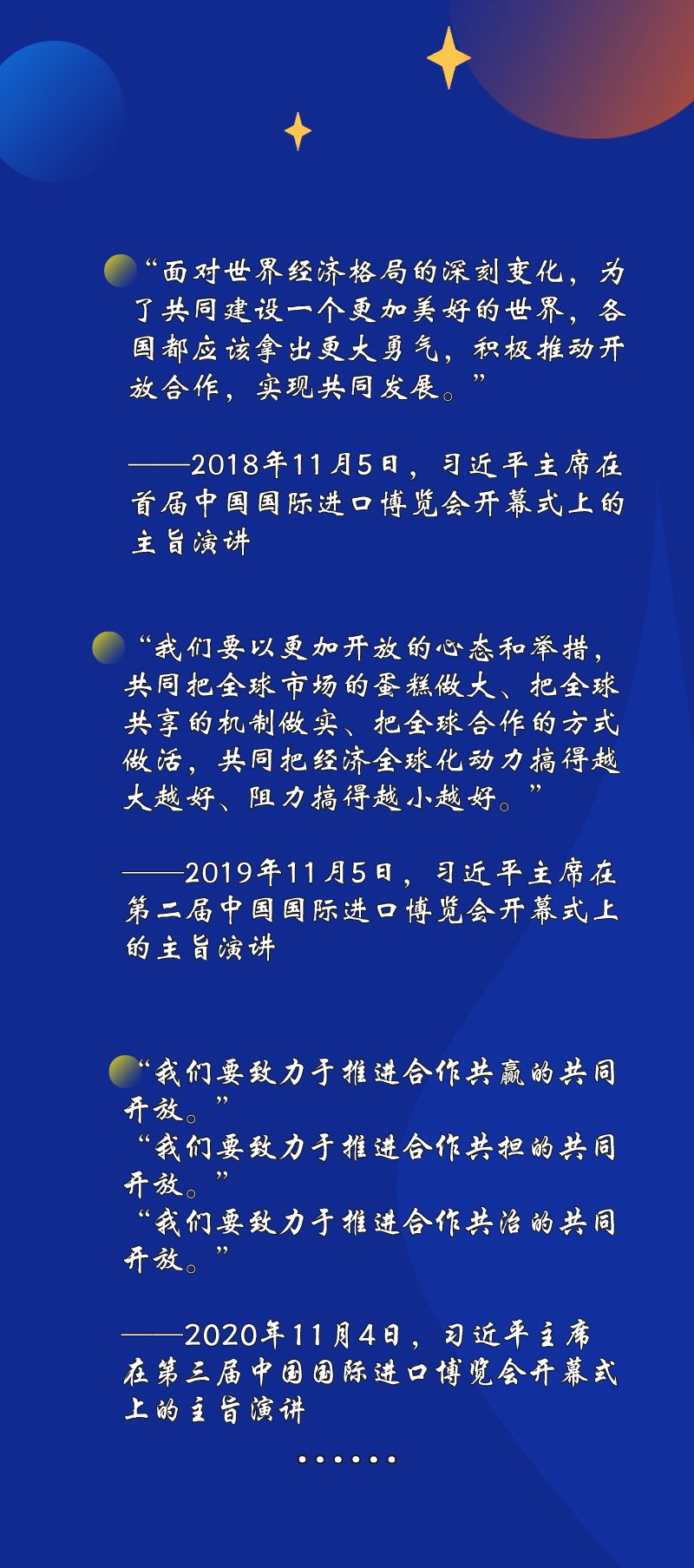 在前三屆進(jìn)博會(huì)開幕式上的主旨演講中,“合作”“共贏”是不變的高頻詞——