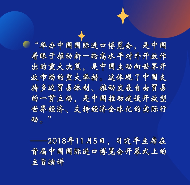 習(xí)近平主席的話,道出了中國(guó)舉辦進(jìn)博會(huì)的要義所在。作為世界上第一個(gè)以進(jìn)口為主題的國(guó)家級(jí)展會(huì),進(jìn)博會(huì)已經(jīng)成為外界觀察中國(guó)對(duì)外開放政策的重要窗口。