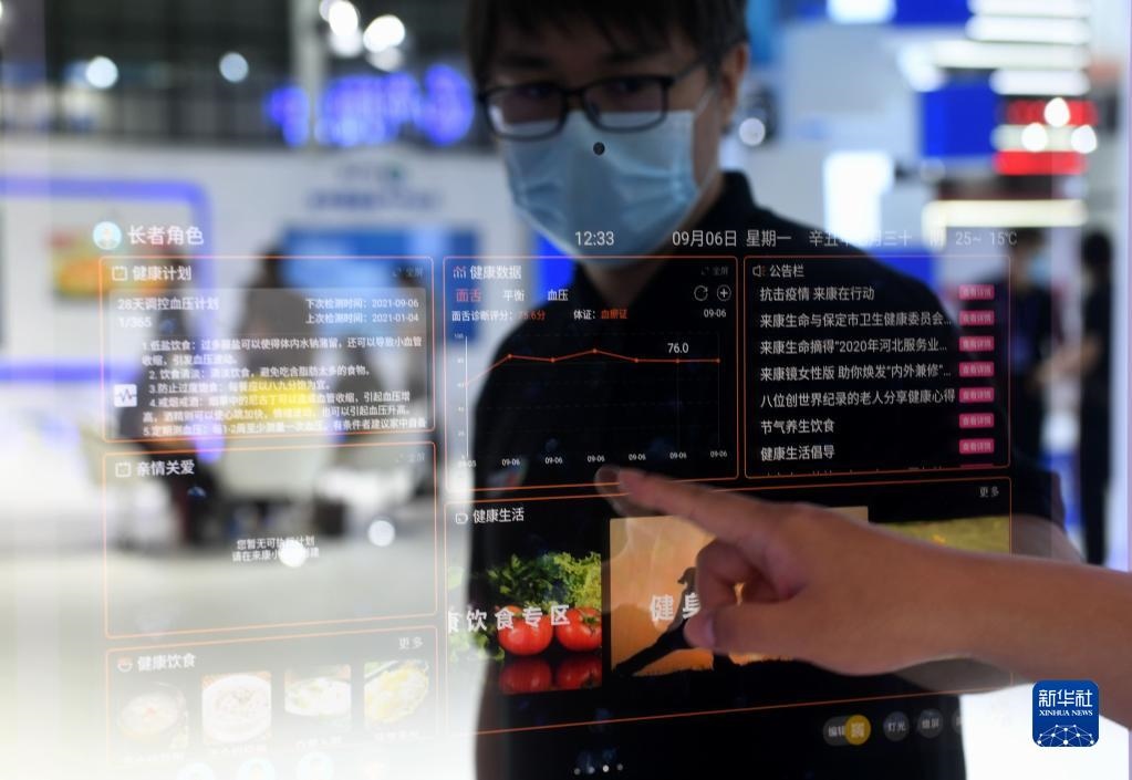 9月6日至8日,2021中國國際數(shù)字經(jīng)濟(jì)博覽會在河北石家莊舉行。這是工作人員在博覽會上操作智能鏡子(9月6日攝)。新華社記者 王曉 攝