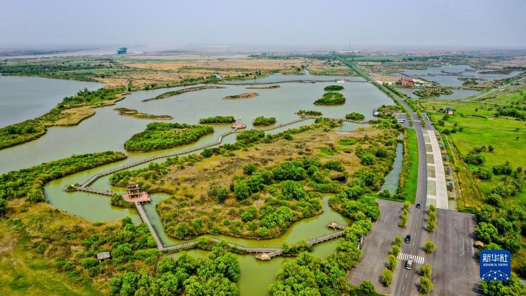 這是5月13日拍攝的山東黃河三角洲國家級自然保護(hù)區(qū)景色(無人機(jī)照片)。新華社記者 郭緒雷 攝