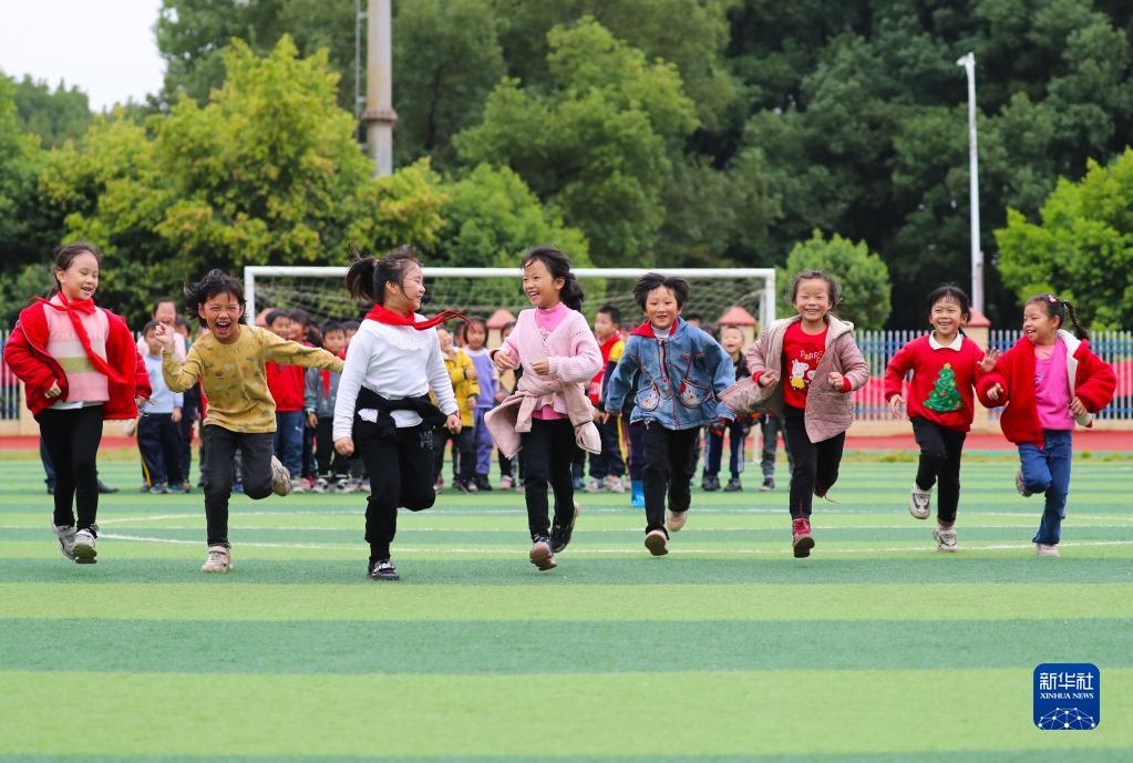 11月4日,在湖南省永州市新田縣雙碧小學(xué),孩子們在運(yùn)動場上做游戲。今年秋季學(xué)期開學(xué)以來,各地積極落實“雙減”政策,利用課后服務(wù)時間開展內(nèi)容豐富、形式多樣的課外活動,促進(jìn)學(xué)生全面發(fā)展。新華社發(fā)(劉貴雄攝)