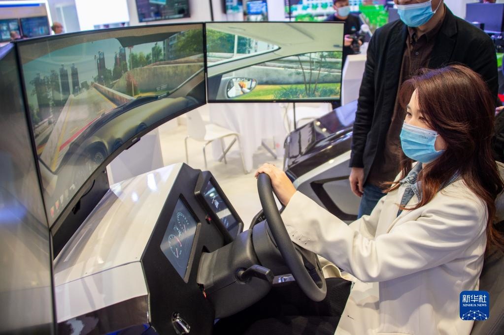 11月19日至21日,2021中國5G+工業(yè)互聯(lián)網(wǎng)大會在位于武漢的中國光谷科技會展中心舉行。這是11月19日,參觀者在“5G+工業(yè)互聯(lián)網(wǎng)成果展”上體驗(yàn)駕駛智能模擬器。新華社發(fā)(伍志尊攝)