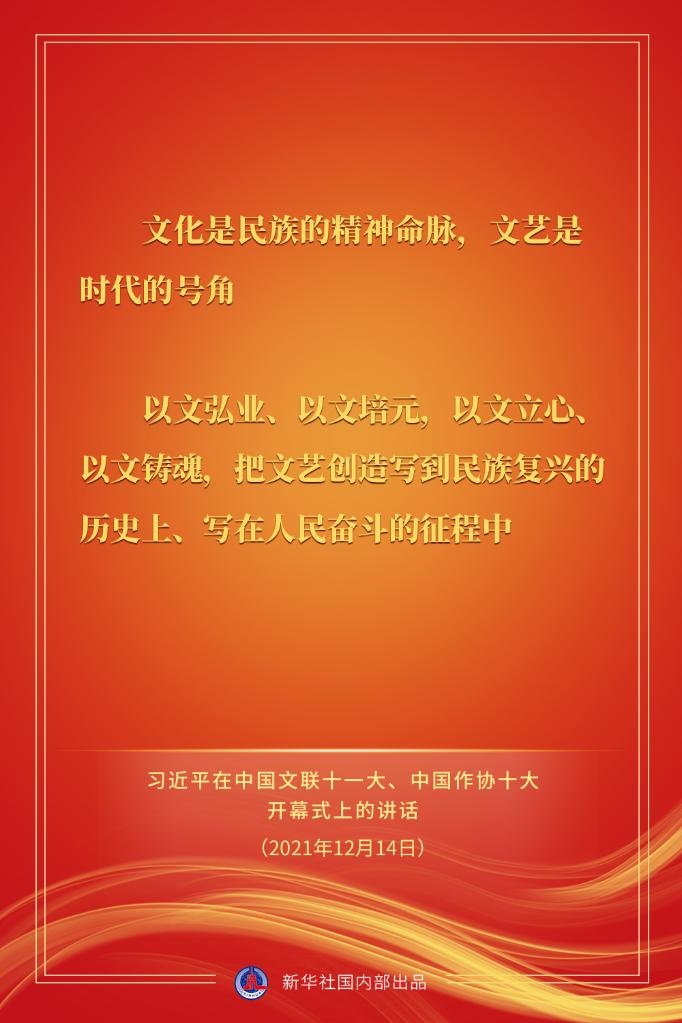 中國文學(xué)藝術(shù)界聯(lián)合會第十一次全國代表大會、中國作家協(xié)會第十次全國代表大會14日上午在北京人民大會堂開幕。習(xí)近平出席大會并發(fā)表重要講話。戳金句,看要點。